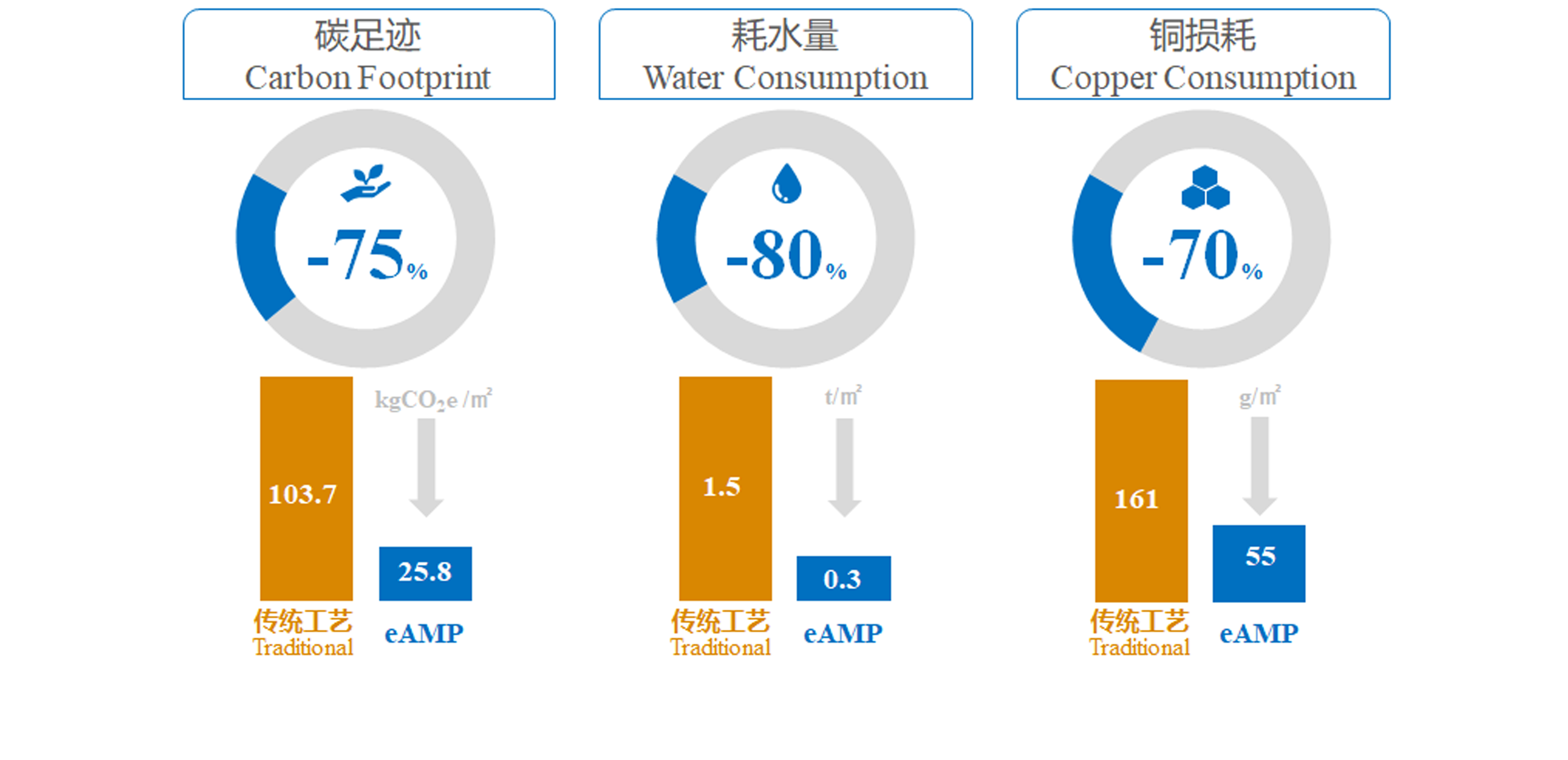 eAMP技術為行業發展帶來了前所未有的變革,有效滿足電子電路制造產業降本增效、低碳環保的需求,可推動傳統產業向高端化、綠色化轉型升級。